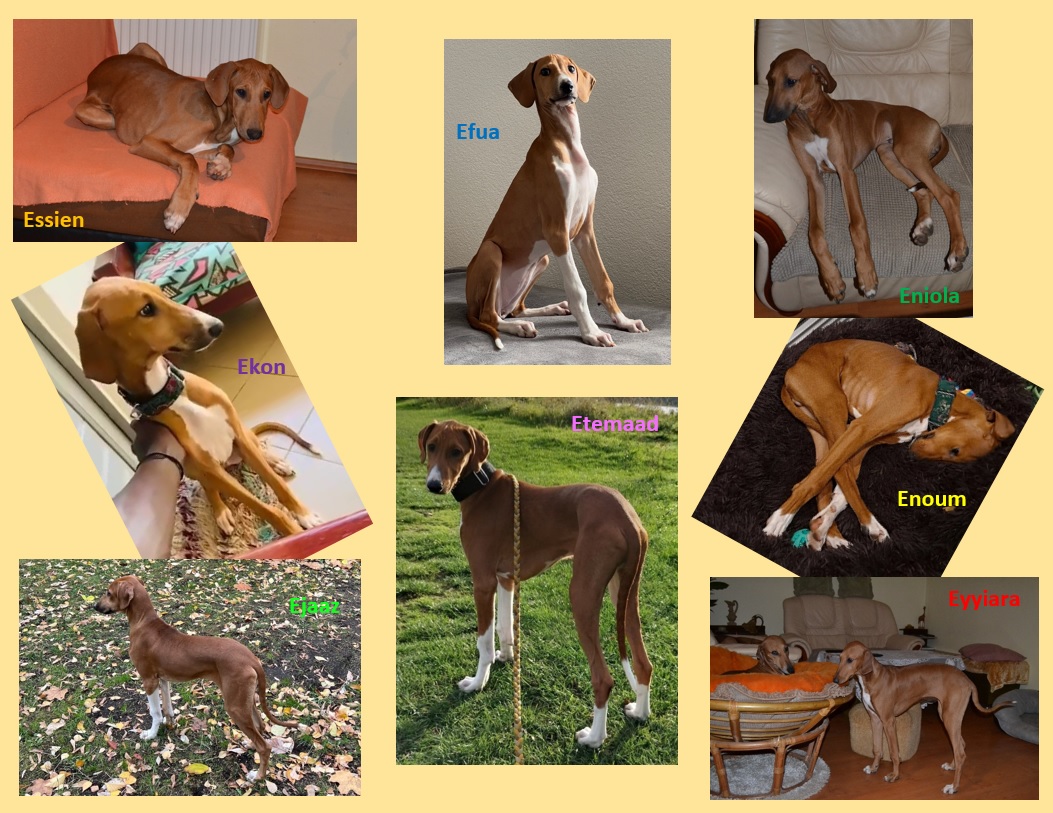 Dne 1.7.2022 se naší Timince (Damtien Ginever) a Bománkovi (Imidiwan Bomani) narodilo 8 překrásných štěňátek vrhu „E“ (6 pejsků, 2 fenečky). Maminka i štěňátka jsou v pořádku. Postupně budeme přidávat fotky a informace k jednotlivým štěňátkům.