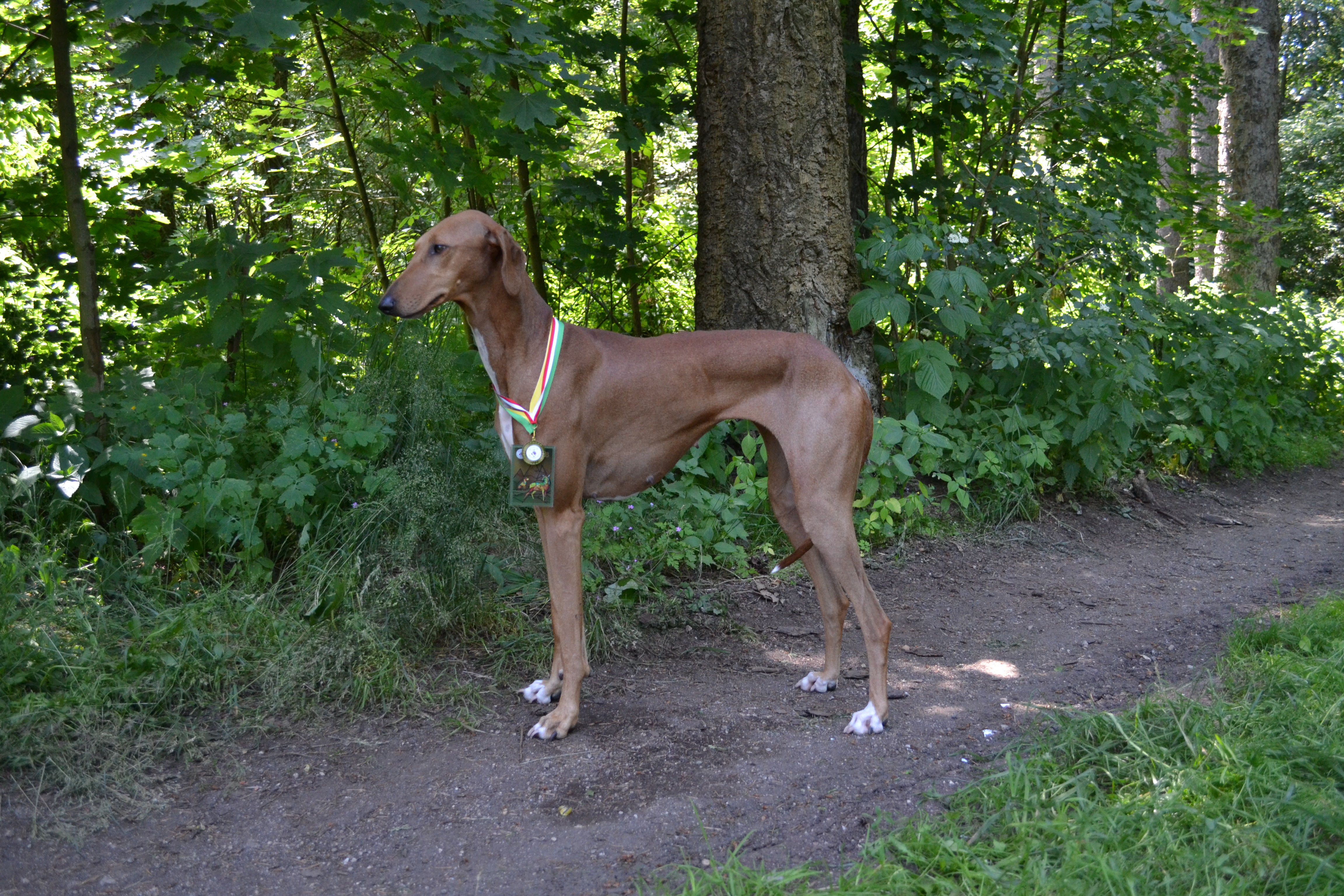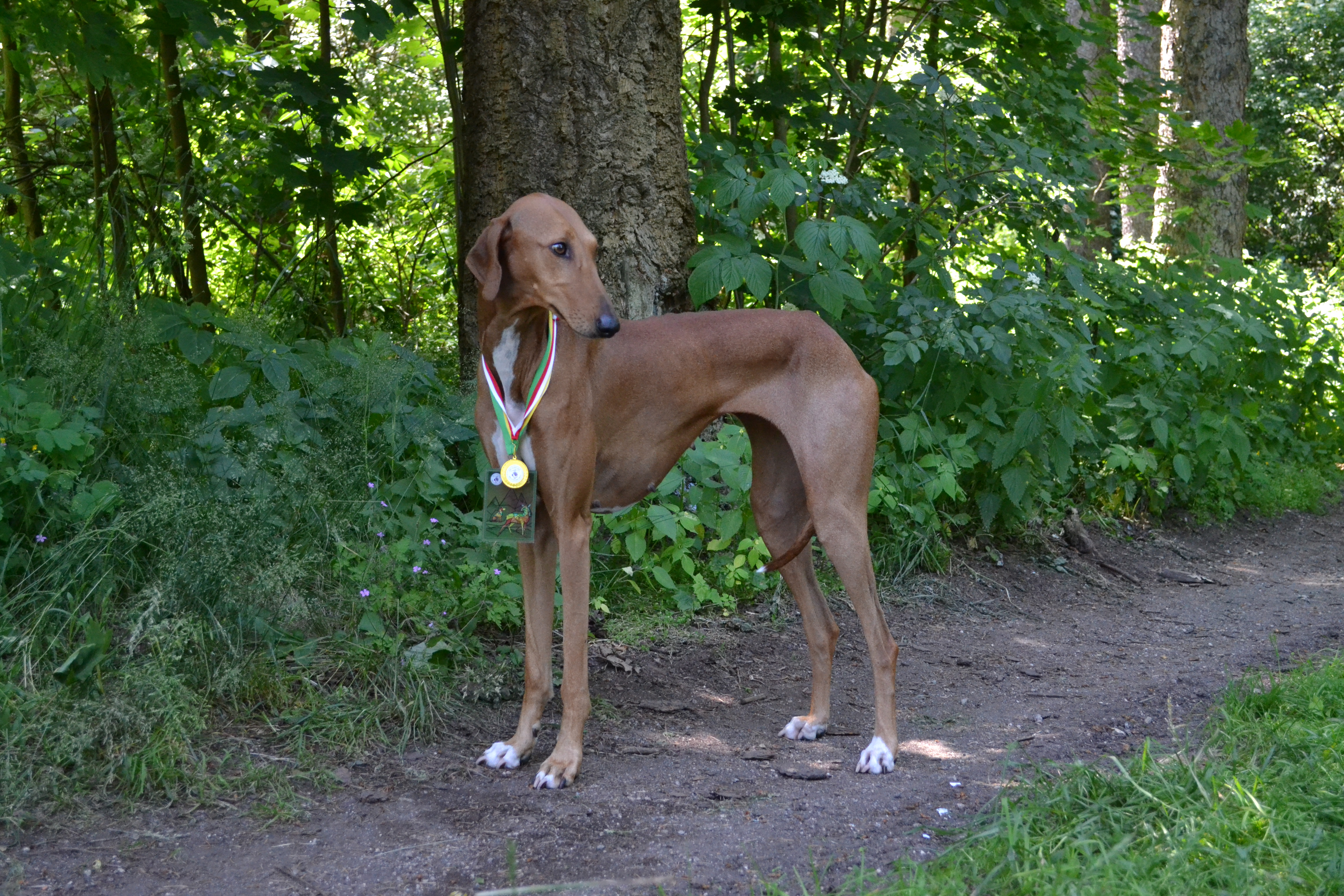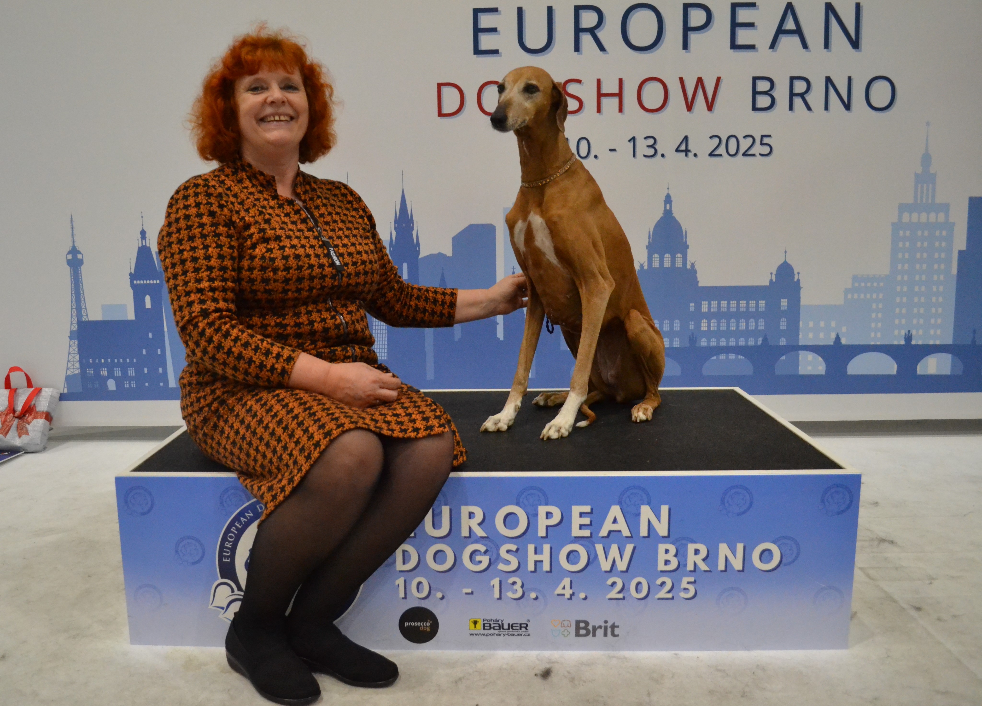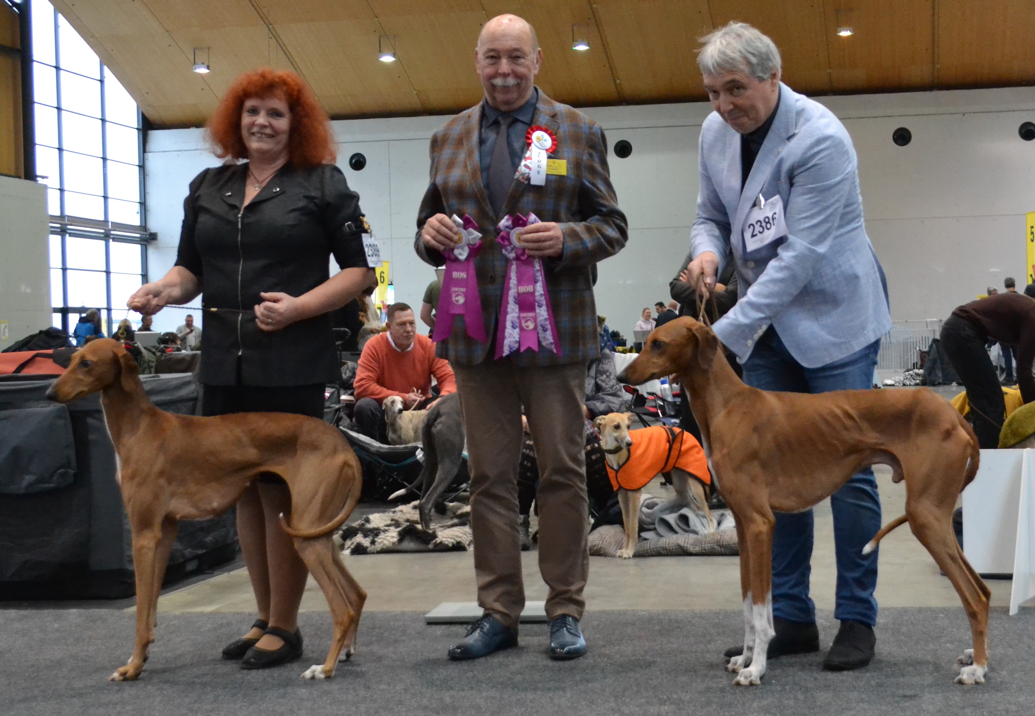 Obrovské poděkování patří všem rozhodčím. Plemeno Azawakh posuzovala paní Zdenka Jílková s maximální ohleduplností na plemeno a moc děkuji za krásné posudky. V závěrečných soutěžích veterány vybírala paní Olga Dolejšová a Didi (Eidi n´Amanar Hadiya) ve svých 10,5 letech pro ni byla tím nejkrásnějším veteránam. A závěr, to nej... z výstavy - BIS - pečlivě rozhodoval a vybíral pan Antonín Mudra.